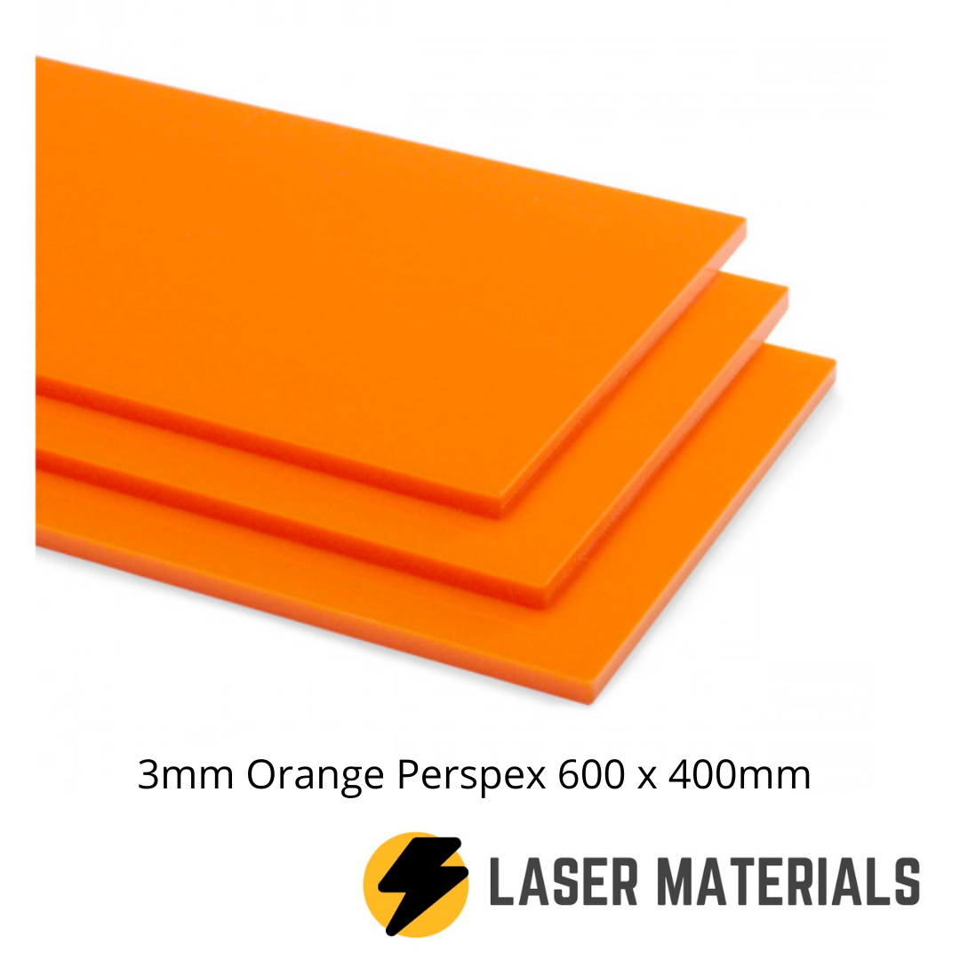 This 3mm thick Orange Perspex Acrylic Sheet measures 600mm x 400mm. The surface of the sheets has a high gloss finish. You cannot see through orange Perspex sheets meaning they can be used in designs/products to provide areas of solid colour.