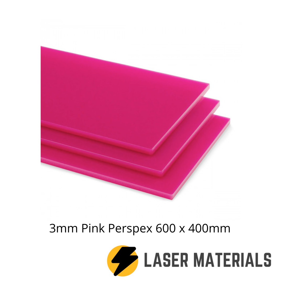 This 3mm thick Pink Perspex Acrylic Sheet measures 600mm x 400mm. The surface of the sheets has a high gloss finish. You cannot see through pink Perspex sheets meaning they can be used in designs/products to provide areas of solid colour.
