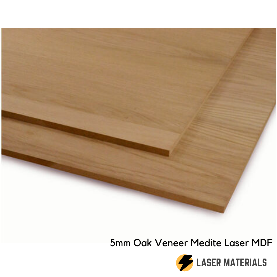 - 1 x 5.0mm Oak Veneered MDF, 600mm x 400mm Sheet.