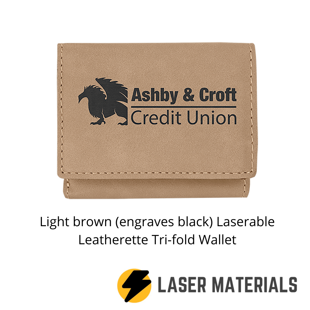 • Light Brown (engraves black) Laserable Leatherette Tri-fold Wallet