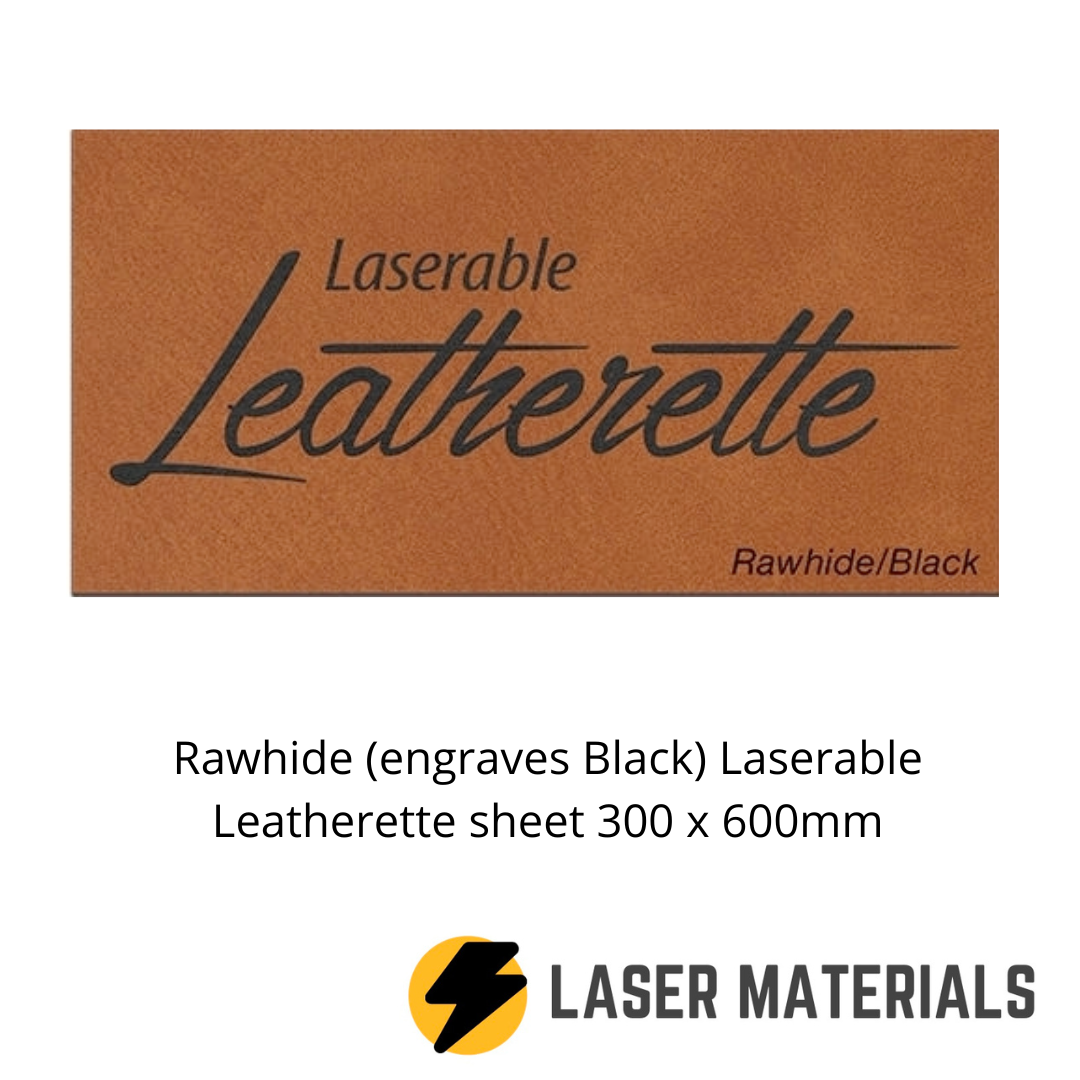 Rawhide Laserable Leatherette engraves Black.